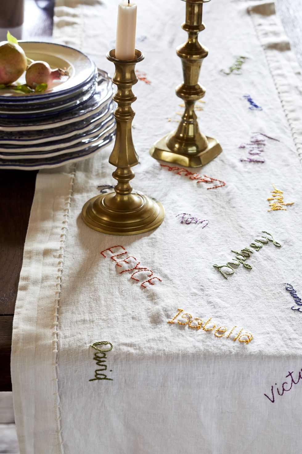 Remember all the guests who’ve graced your Thanksgiving table by creating a memory table runner. To make, have guests sign the runner with a disappearing pen, then embroider over the signatures. Shop for disappearing pens here. Shop for embroidery tools here.