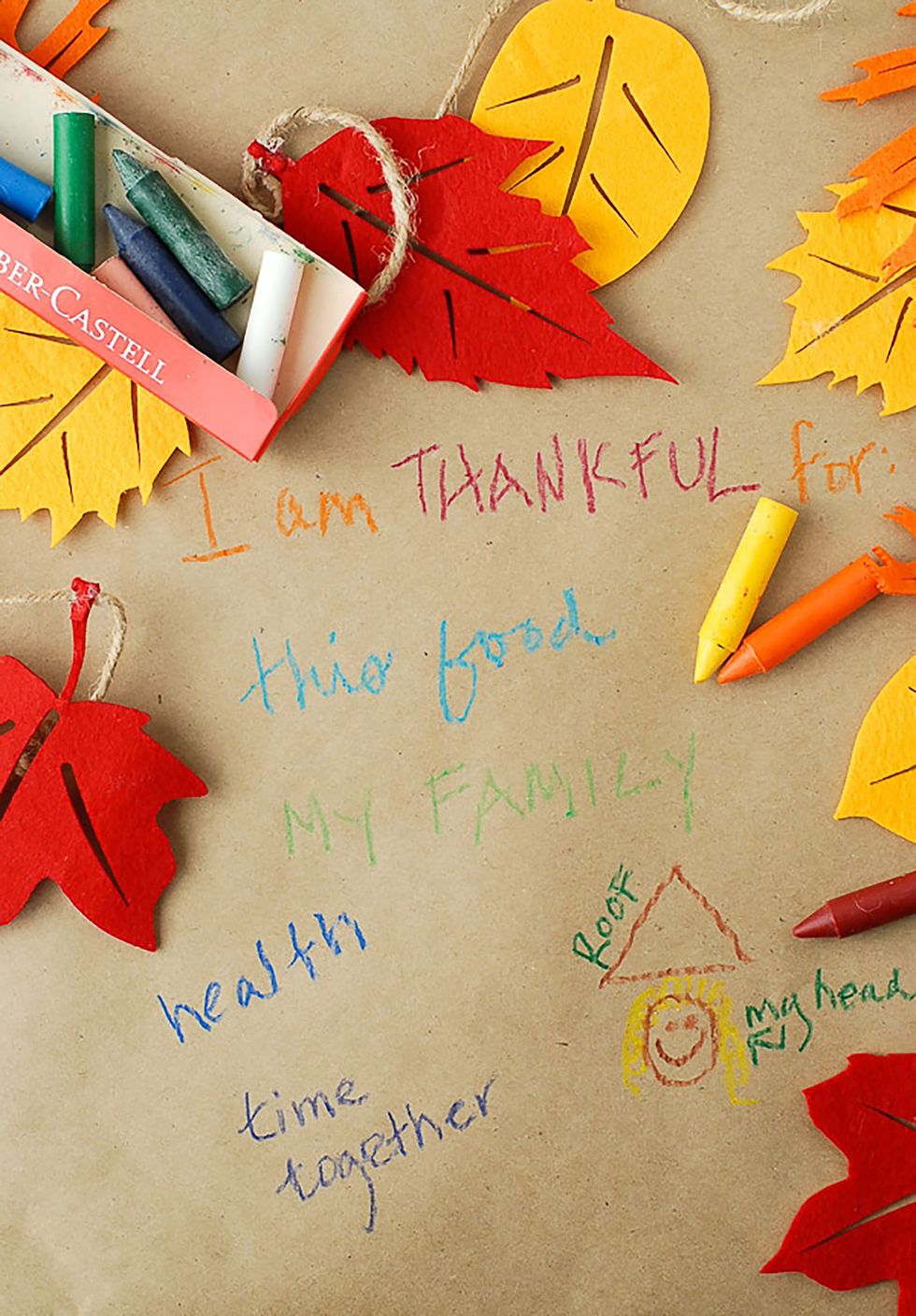 Start a new tradition by having the kids decorate butcher paper and/or a tablecloth. They can do this for their own table if they have one and/or create one for the grown-up table! This can be used for years and once it gets worn out make a new one with the new kids in the family and guests.