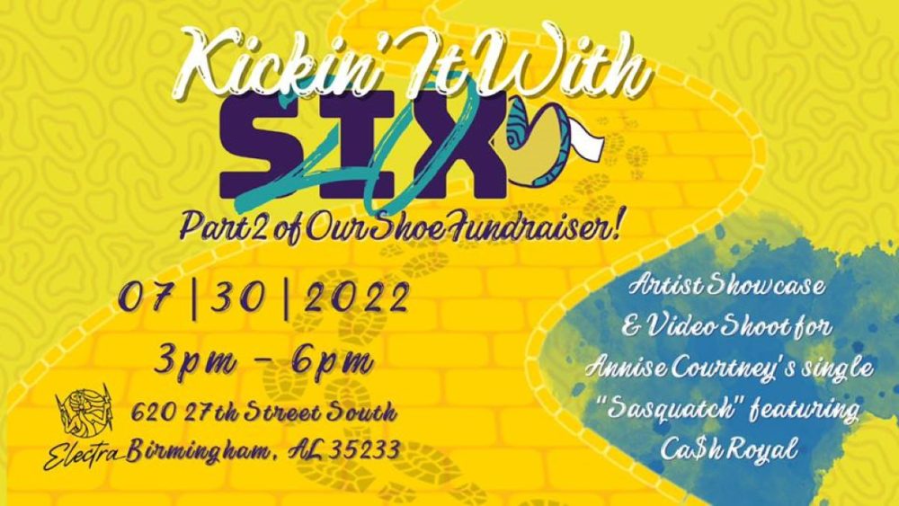 Six20Media has been steadily growing as a Birmingham creative force, and will continue taking things to new heights with their “Kickin It with Six20” show this Saturday from 3 to 6pm at Electra. The event features a video shoot for Annise Courtney’s hit song “Sasquatch” featuring Cash Ashelyn Royal, special guests including K1NG ELJAY, and sounds from The Phasing Octopus. They will also be taking gently worn shoes as donations at this community-centered event.