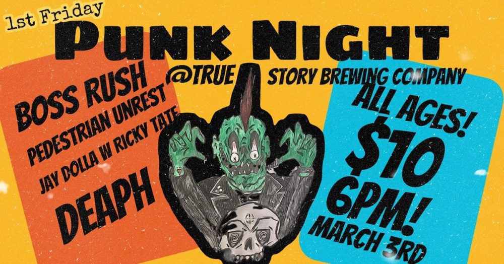 The first Friday of every month means one thing in Birmingham: punk night. Art By Burx, Hannah Ali Burx, and the rest of this punk organizing crew work hard to highlight some of the finest acts in the city to True Story each month. This month’s edition features Boss Rush, Pedestrian Unrest, Jay Dolla w/ Ricky Tate, and Deaph. There will also be a Newlyweds Bash concert hosted by the Burx collective at True Story on Saturday that we’d recommend checking out!