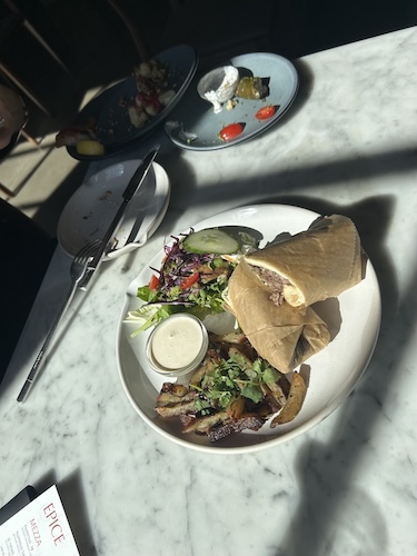 The Epice Salad ($16) is worth putting their name on. The greens had apricot, almond, goat cheese with a fig vinaigrette. The Shawarma ($17) is lunch item, which was a bit skimpy but fine, did come with fries. And they’re worth asking for. Like everyone, we’ve had a million fries from a million places, but none quite like these. While not super crisp, they’re seasoned with Middle-Eastern spices and lots of lemon. The wine selection includes several Lebanese wines that have similar flavor profiles to Spanish and French varietals.