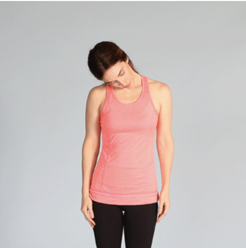 - Hold for 5 seconds, then slowly roll the head back in a clockwise circle three times.