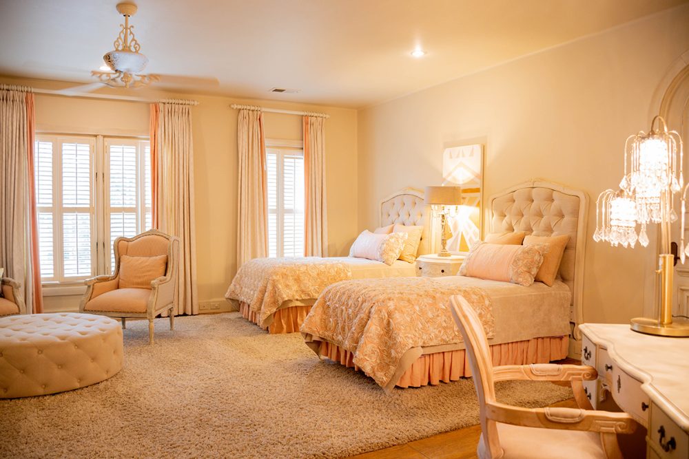 Bedroom: Pretty in pink. This bedroom is the stuff little girls’ dreams are made of.