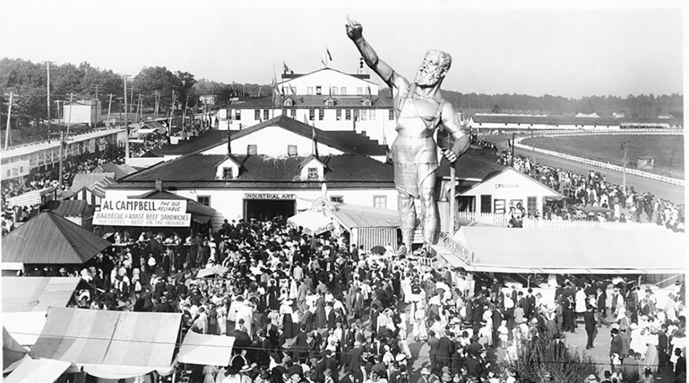After the fair, Vulcan was disassembled and taken back to Birmingham by train. He was then placed at the Alabama State Fairgrounds for almost 30 years. (When he was reassembled, he was put together incorrectly – preventing him from carrying his spearpoint.) In the years of the Great Depression Vulcan was yet to have a permanent home until 1939 when he was placed in his very own park atop Red Mountain.