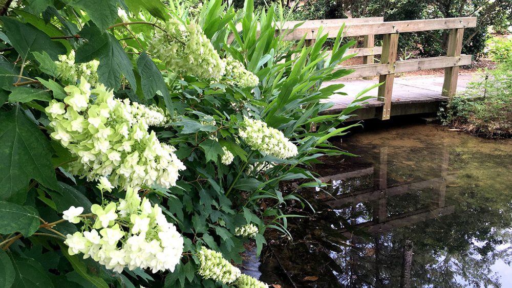 Customers can own “a little bit of Aldridge Gardens” when they buy a pass-along plant that lived there. They’ll have many plants with an Aldridge Gardens heritage. The main feature is always the “Snowflake” hydrangea, but shoppers can also choose from a host of others.