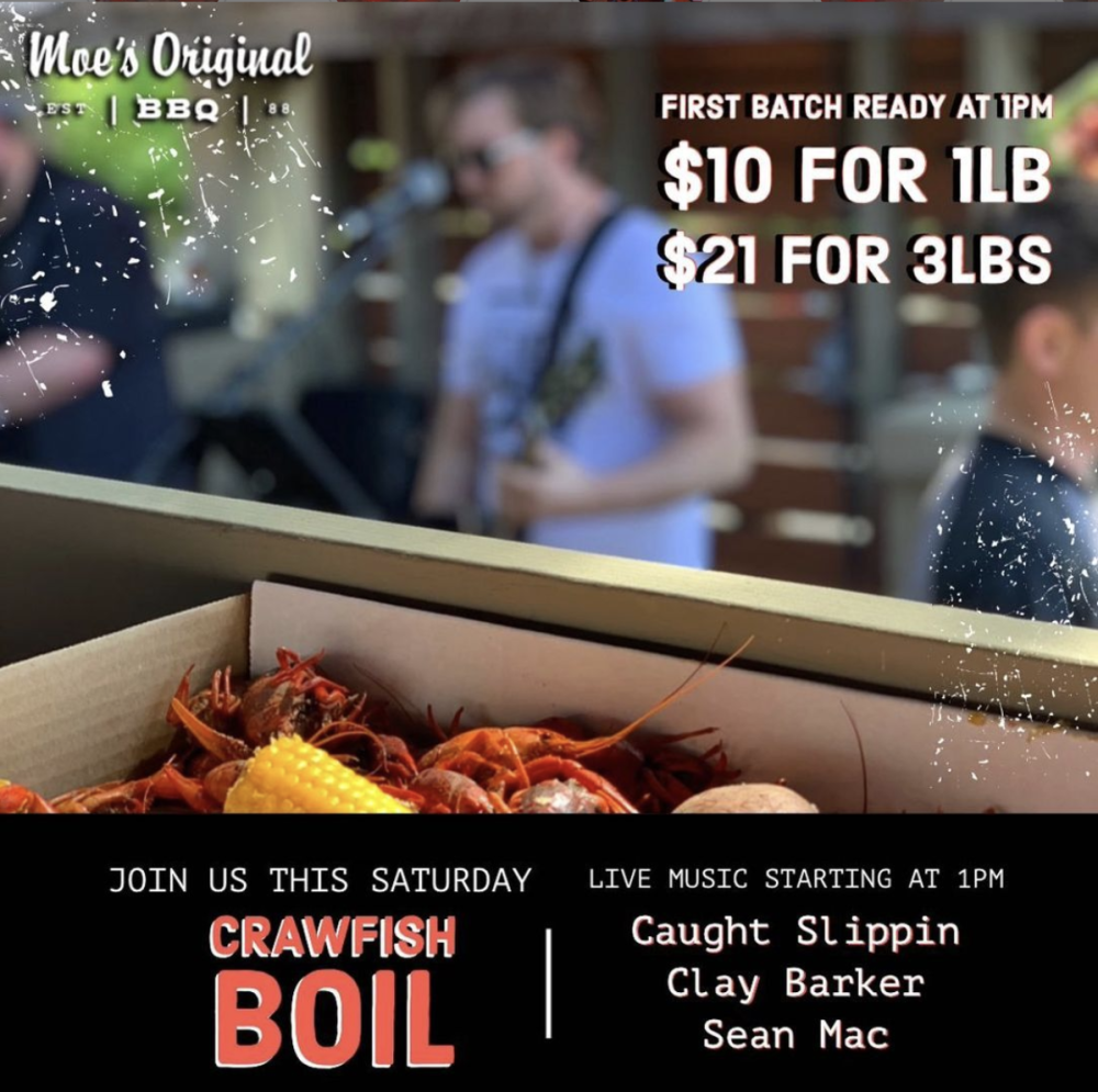 Join Moe’s BBQ in Lakeview for their Crawfish Boil featuring Good People Brewing and Avondale Brewing!