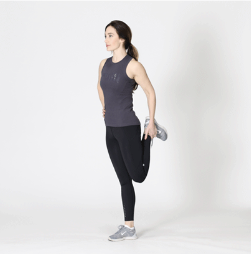 - Lift one leg up behind the body, bringing the heel toward the buttocks.